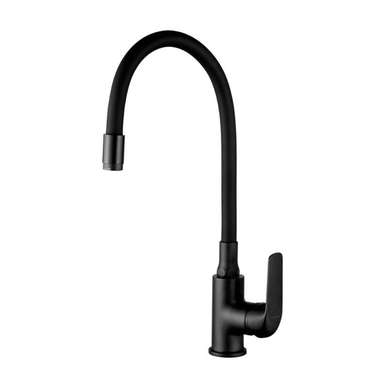 ✅ Otrzymasz baterię zlewozmywakową stojącą z elastyczną wylewką w modnym czarnym wykończeniu.