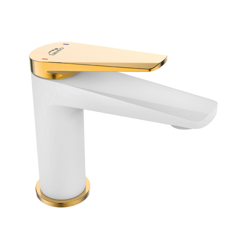 - Biżuteryjna Estetyka: Połączenie nieskazitelnego białego korpusu ze złotą dźwignią i rozetą tworzy luksusowy kontrast. Kształty nawiązujące do oszlifowanego diamentu sprawiają, że bateria staje się centralnym punktem nowoczesnej aranżacji.