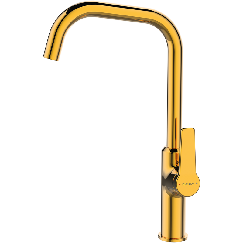 ✅ Otrzymasz baterię zlewozmywakową stojącą z ruchomą wylewką L w modnym złotym wykończeniu.