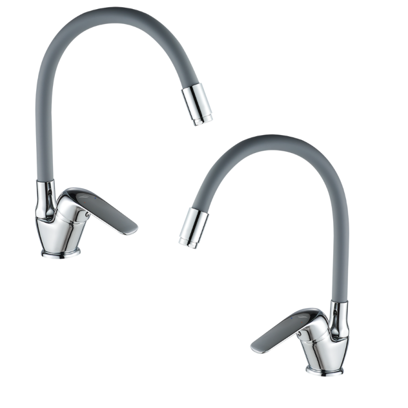 Bateria Zlewozmywakowa Stojąca z Elastyczną Wylewką F Bateria Kuchenna Szara BKE_967D
