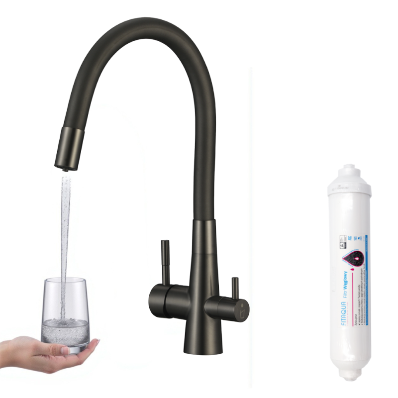 Bateria Filtrująca Wodę Z Elastyczną Wylewką +Filtr Węglowy Riveco Grafit Czarny BRIB968D