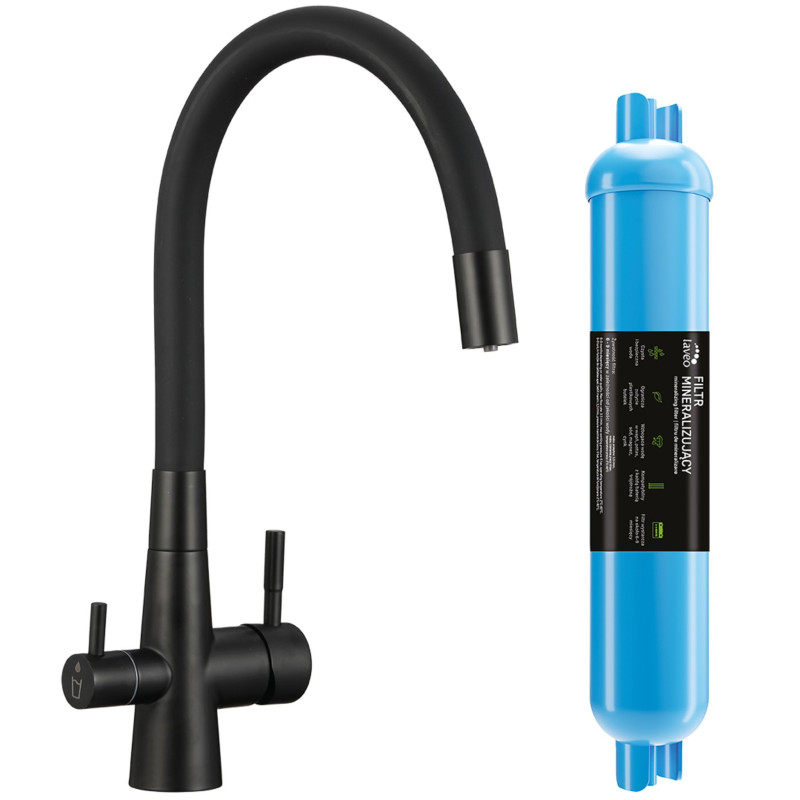 Bateria Filtrująca Wodę Z Elastyczną Wylewką + Filtr Mineralizujący Riveco Czarna BRICB68D