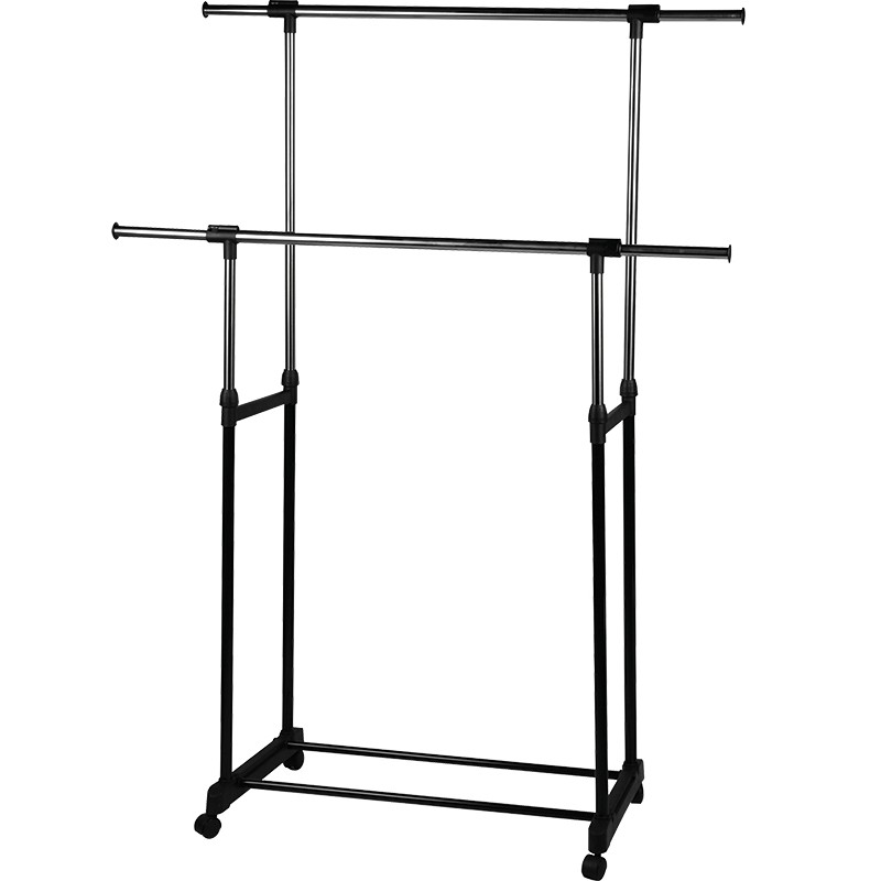 Garderoba Przenośna PAULO BIS Podwójny Stojak Wieszak Chrom Czarny