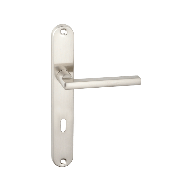 ✅ Otrzymasz klamkę na Długim Szyldzie z przebiciem na klucz w wykończeniu Satyna o łagodnej linii.