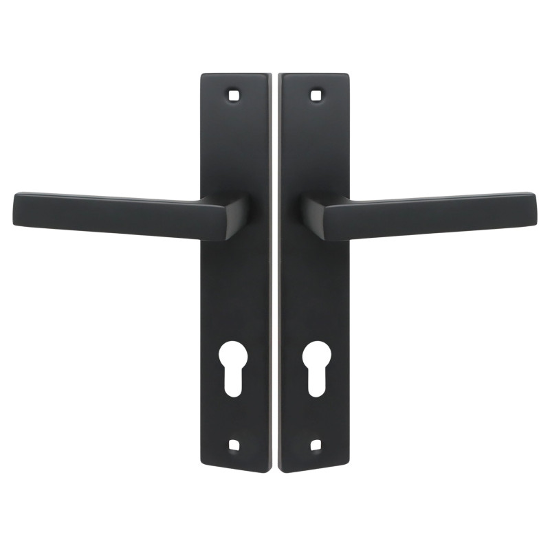 Klamka Rando czarna na długim szyldzie to idealny wybór dla osób ceniących klasykę w nowoczesnym wydaniu. Jej prosta, minimalistyczna forma i modne, czarne matowe wykończenie nadają drzwiom wewnętrznym eleganckiego, schludnego charakteru. Wariant z rozstawem 90 mm to rozwiązanie dedykowane mniej typowym układom zamków, poszerzające możliwości zastosowania klamki.