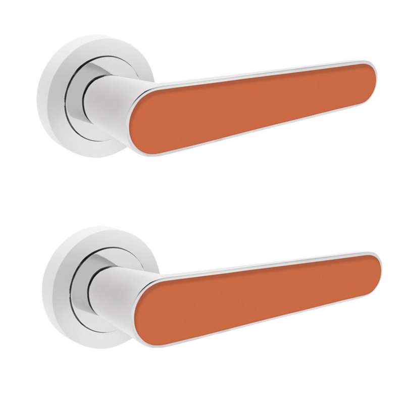 Klamka wewnętrzna TARA posiada idealnie gładką chromową powierzchnię z akcentem kolorystycznym. Pomarańcz jest radosnym kolorem, który pasuje do osób zdecydowanych i energicznych. Fantastycznie sprawdzi się w parze z jasnymi pomieszczeniami i białymi drzwiami.