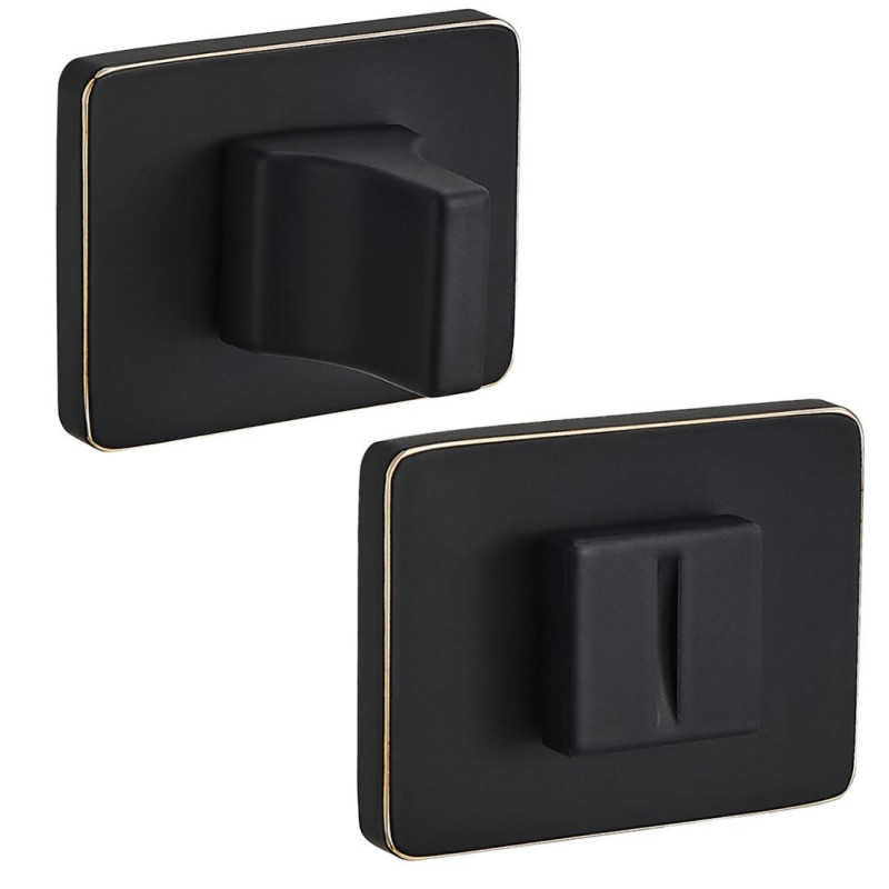 Szyld prostokątny do WC z serii LP2 w ekskluzywnym wykończeniu czarno-złotym to element, który wprowadza do łazienki atmosferę nowoczesnego szyku i prestiżu. Stanowi idealne dopełnienie klamek na prostokątnych szyldach, tworząc spójną, biżuteryjną kompozycję na drzwiach. Wykonany z trwałego stopu ZnAl, łączy w sobie funkcjonalność blokady łazienkowej z wyrafinowanym designem, doskonale wpisując się w aranżacje glamour, modern classic i loft.