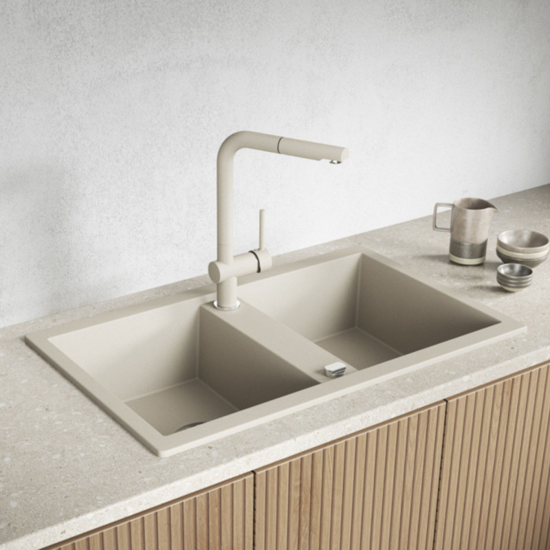 Zlew Zlewozmywak Granitowy Beżowy 2 Komorowy Barbados SBB_420T