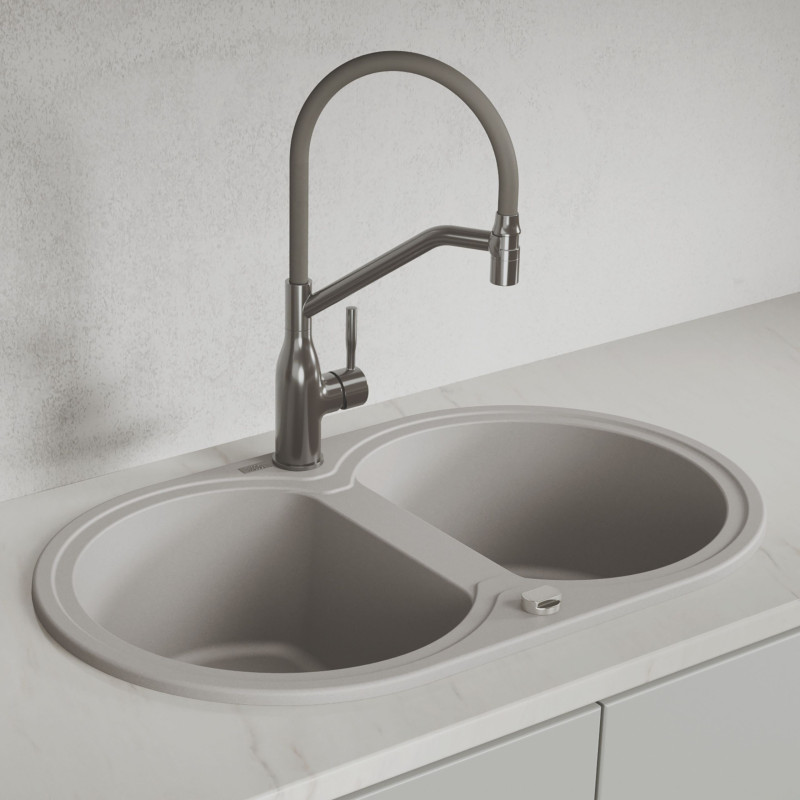 Zlew Zlewozmywak Granitowy Szary 2 Komorowy DAFNE