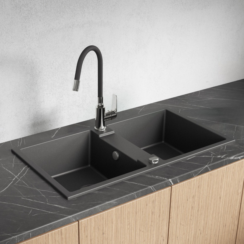 Zlewozmywak Granitowy Dwukomorowy Czarny RAB SBF_720Y