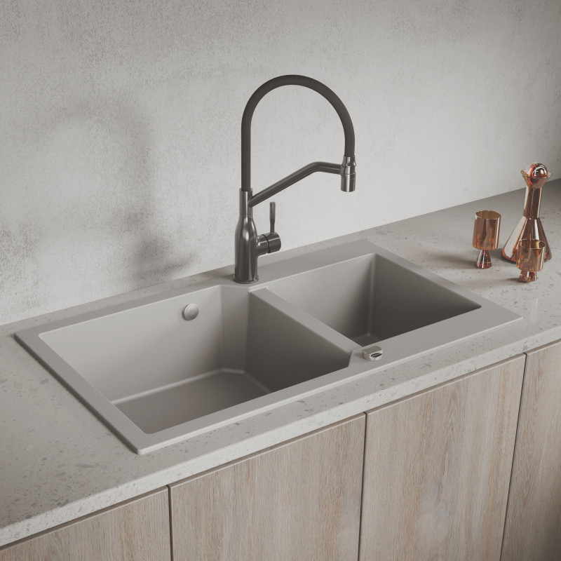 ➡️ Tak, szary kolor jest doskonałym i praktycznym wyborem. Jest nowoczesny, łatwo komponuje się z różnymi blatami i frontami szafek, a jednocześnie jest mniej podatny na widoczność zacieków wodnych niż kolory bardzo jasne lub bardzo ciemne. Granitowa powierzchnia zlewozmywaka MILOS jest trwała i łatwa w czyszczeniu, co dodatkowo podnosi jego funkcjonalność.