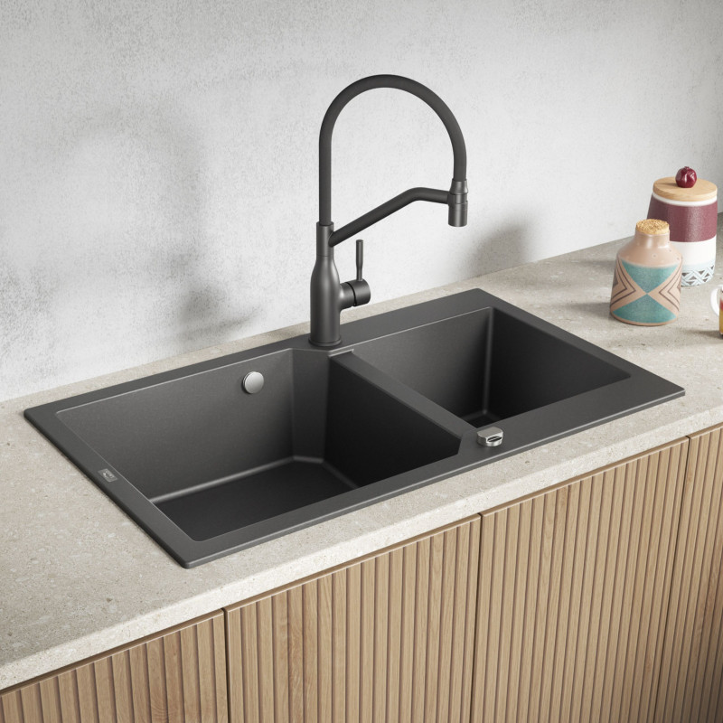➡️ Czarne zlewozmywaki granitowe, takie jak MILOS, są bardzo eleganckie, ale mogą wymagać nieco więcej uwagi niż jaśniejsze kolory, jeśli chodzi o osady z twardej wody. Jednak sam granit jest materiałem bardzo odpornym na plamy i łatwym do czyszczenia. Regularne wycieranie do sucha i stosowanie odpowiednich środków pielęgnacyjnych pozwoli zachować głęboką czerń i nieskazitelny wygląd na długo.