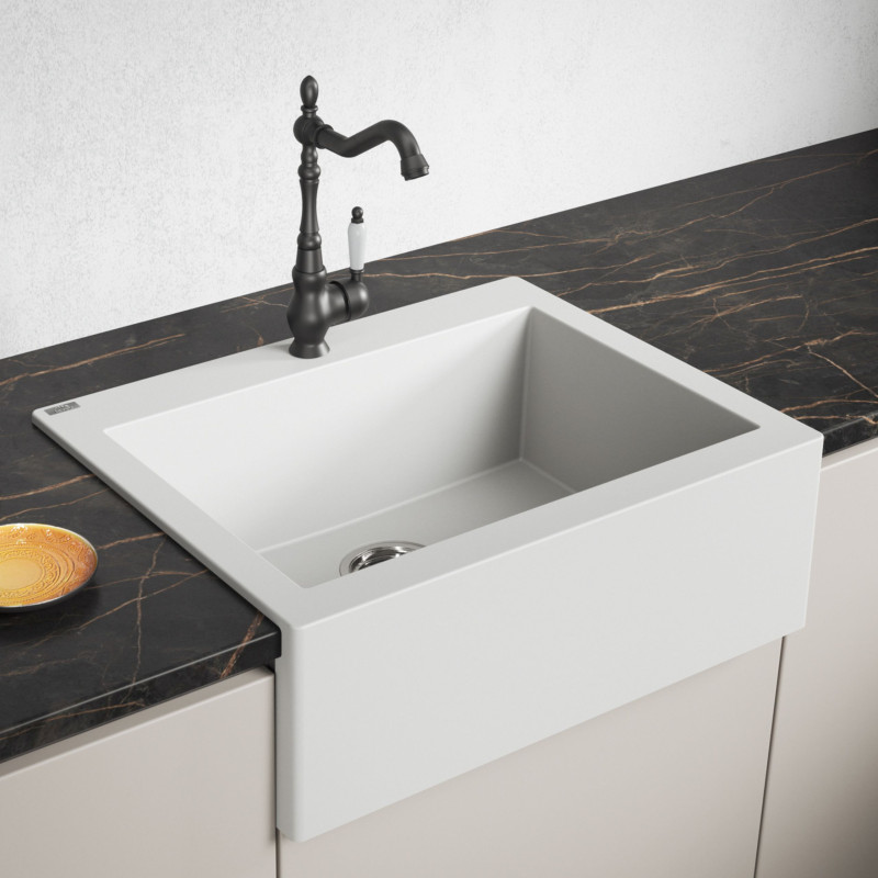 Biały Granitowy Zlewozmywak KOMODO Z Kołnierzem Automatyczny Korek KLIK KLAK SBK_610T