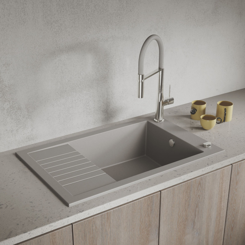 - Wygodny montaż: Zlewozmywak jest odwracalny, co pozwala na łatwe dopasowanie go do każdej kuchni. Przeznaczony jest do szafki o minimalnej szerokości 60 cm.