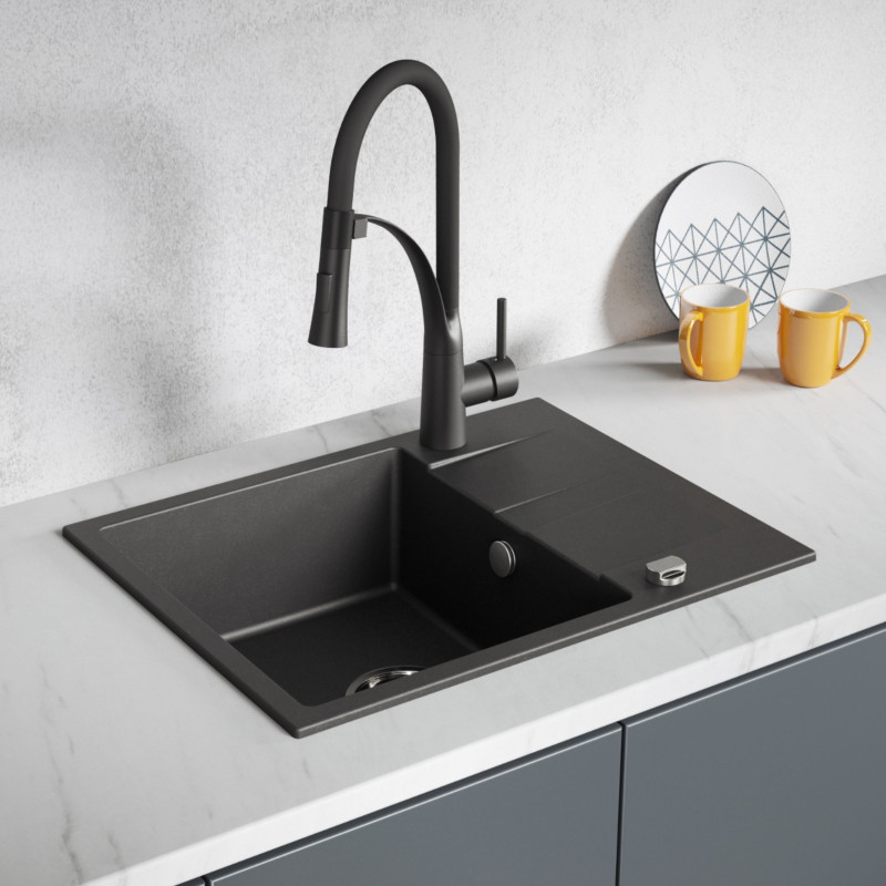 ✅ Kolor zlewu jest czarny nakrapiany dzięki temu delikatne zabrudzenia nie rzucają się w oczy.