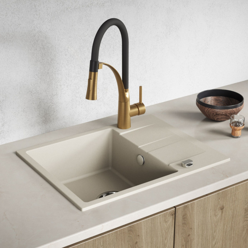 Zlew Zlewozmywak Jednokomorowy Granitowy Beżowy z Półociekaczem SBZ_413Y