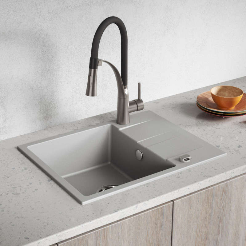Zlew Zlewozmywak Jednokomorowy Granitowy Szary z Półociekaczem SBZ_513Y