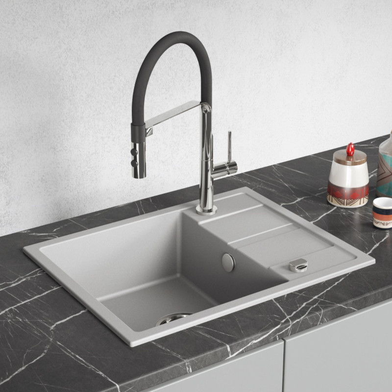 Zlew Zlewozmywak Jednokomorowy Granitowy Szary z Półociekaczem VITI SBX_513Y