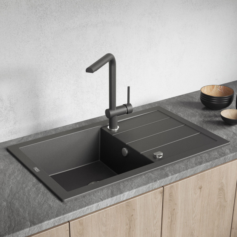 ✅ Czarny, matowy kolor zlewu doda elegancji i nowoczesności, idealnie komponując się z różnymi stylami wnętrz, od industrialnych po klasyczne.