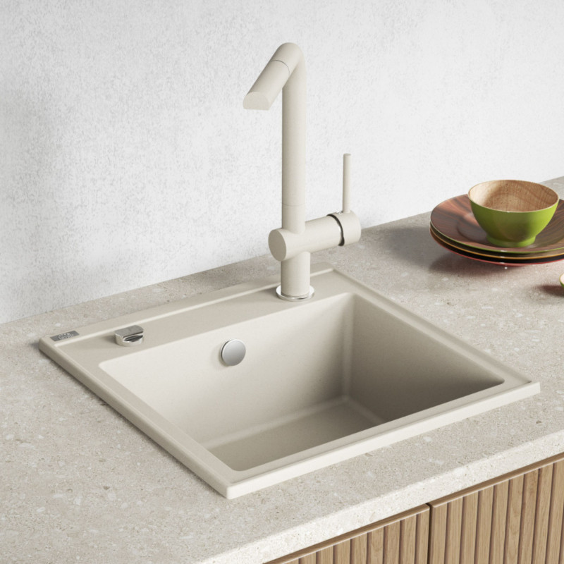 Zlewozmywak Granitowy TRZYNASTKA Beż 1-komorowy Mały 44x44 do szafki 50
