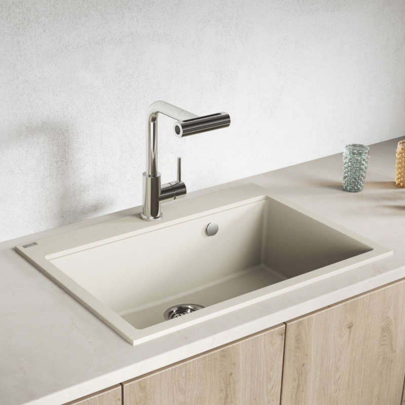 ✅ Odkryj zlewozmywak granitowy TAU w stylowym beżowym kolorze – idealny wybór do nowoczesnych kuchni w stylu Scandi czy Boho. Ten jednokomorowy, wpuszczany w blat model wyróżnia się dużą i głęboką na 20 cm komorą, zapewniając wyjątkowy komfort podczas mycia nawet dużych naczyń. Wykonany z trwałego granitu, jest odporny na zarysowania, uderzenia i wysoką temperaturę (do 250°C). Wyrazisty, kanciasty kształt nadaje charakteru, a dołączony syfon Space Saving pozwala zaoszczędzić miejsce w szafce pod zlewem.