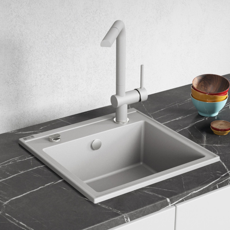 Zlewozmywak Granitowy 1 komorowy 44x44cm z syfonem Szary TRZYNASTKA Laveo SBP_510T