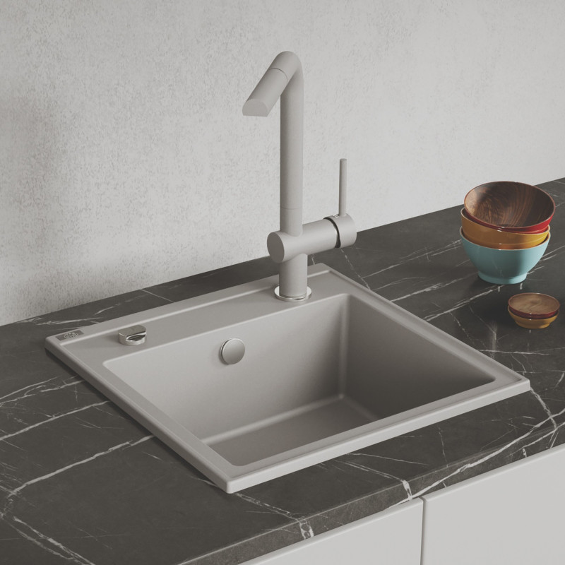 ✅ Szukasz kompaktowego zlewozmywaka do małej kuchni lub aneksu? TRZYNASTKA w nowoczesnym szarym kolorze to strzał w dziesiątkę! Ten jednokomorowy zlewozmywak granitowy (44x44 cm) z serii Trzynastka jest idealny do szafki od 50 cm. Wyprodukowany w polskiej fabryce pod Poznaniem, łączy minimalistyczny design z wysoką odpornością na zarysowania, uderzenia i temperaturę (do 250°C). Głęboka na 17 cm komora, automatyczny korek i syfon Space Saving zapewniają komfort i funkcjonalność nawet w niewielkiej przestrzeni.