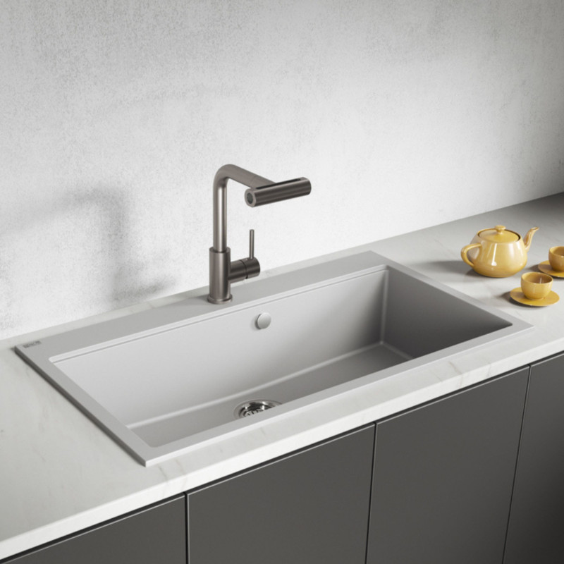 ➡️ Szary kolor jest uważany za bardzo praktyczny w kuchni, również w przypadku dużych zlewozmywaków, jak model TAU XXL. Skutecznie maskuje drobne zacieki wodne czy odciski palców. Granitowa powierzchnia jest łatwa w czyszczeniu i odporna na plamy. Regularna pielęgnacja pozwoli zachować elegancki wygląd szarego zlewu na długie lata.