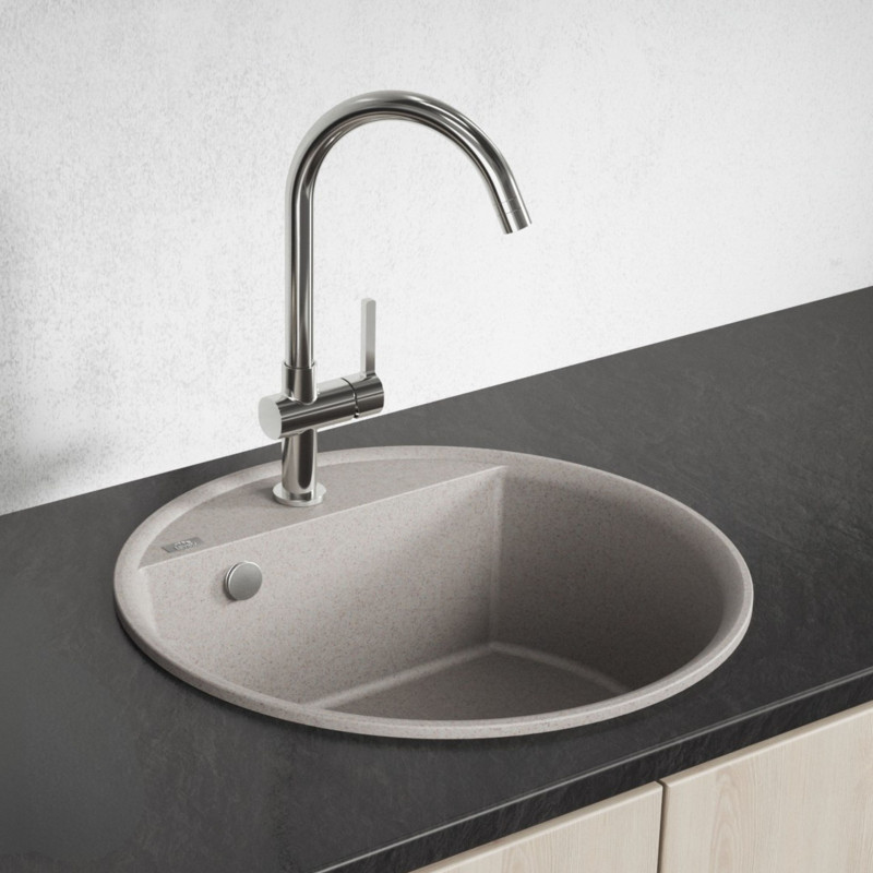 Zlewozmywak granitowy Muna to kwintesencja ponadczasowej elegancji i minimalistycznego stylu, idealna propozycja do mniejszych kuchni i aneksów. Okrągła forma i ciepły beż nadają wnętrzu łagodnego charakteru, a solidna konstrukcja z granitu gwarantuje satysfakcję z użytkowania przez wiele lat.