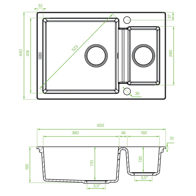 ✅ Posiada wygodne automatyczne zamknięcie odpływu w postaci korka umieszczonego na przodzie zlewozmywaka.