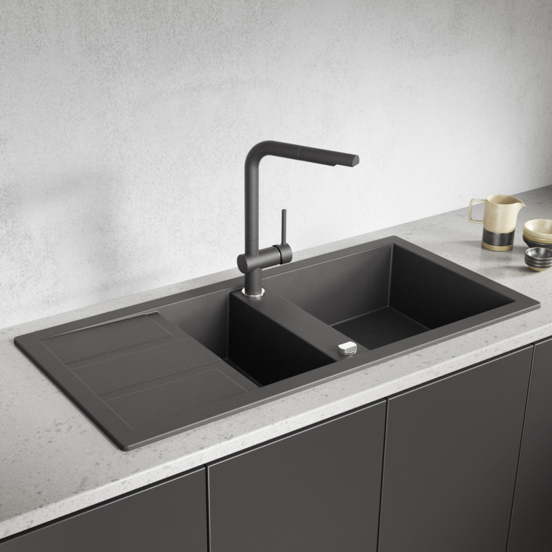 Zlew Zlewozmywak Granitowy Czarny 1,5 Komorowy SBB_731T
