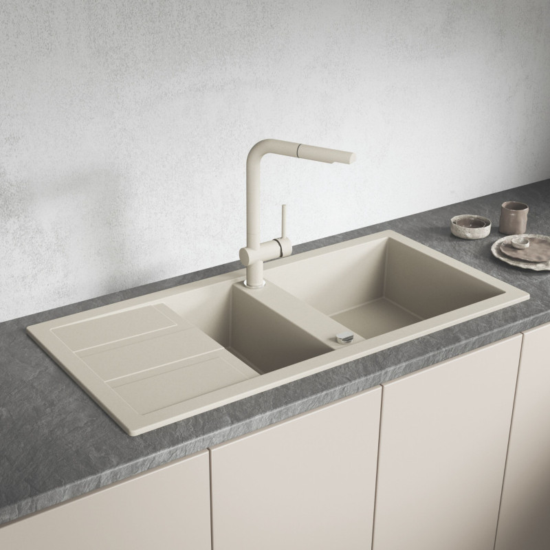 Zlew Zlewozmywak Granitowy Beżowy 1,5 Komorowy