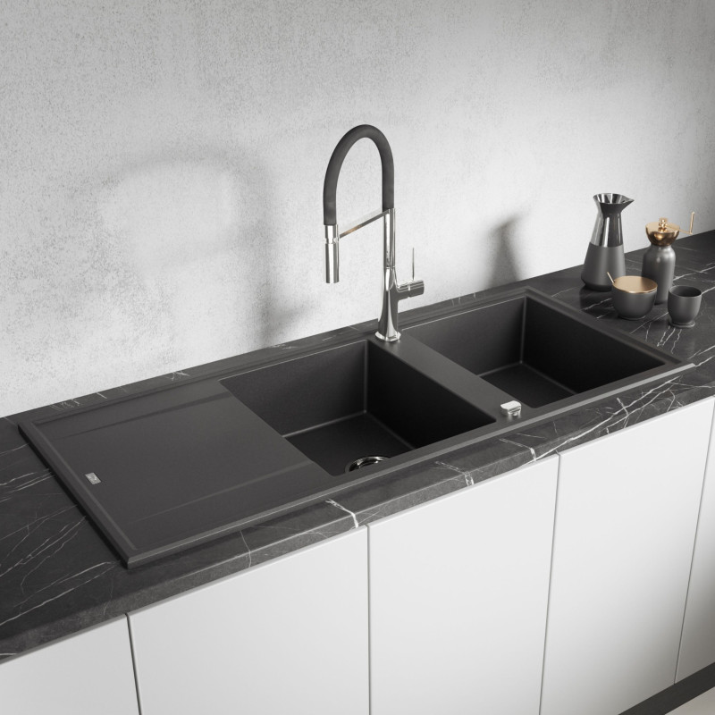 Zlew Zlewozmywak Granitowy Czarny 2 Komorowy Megalo SBE_721T