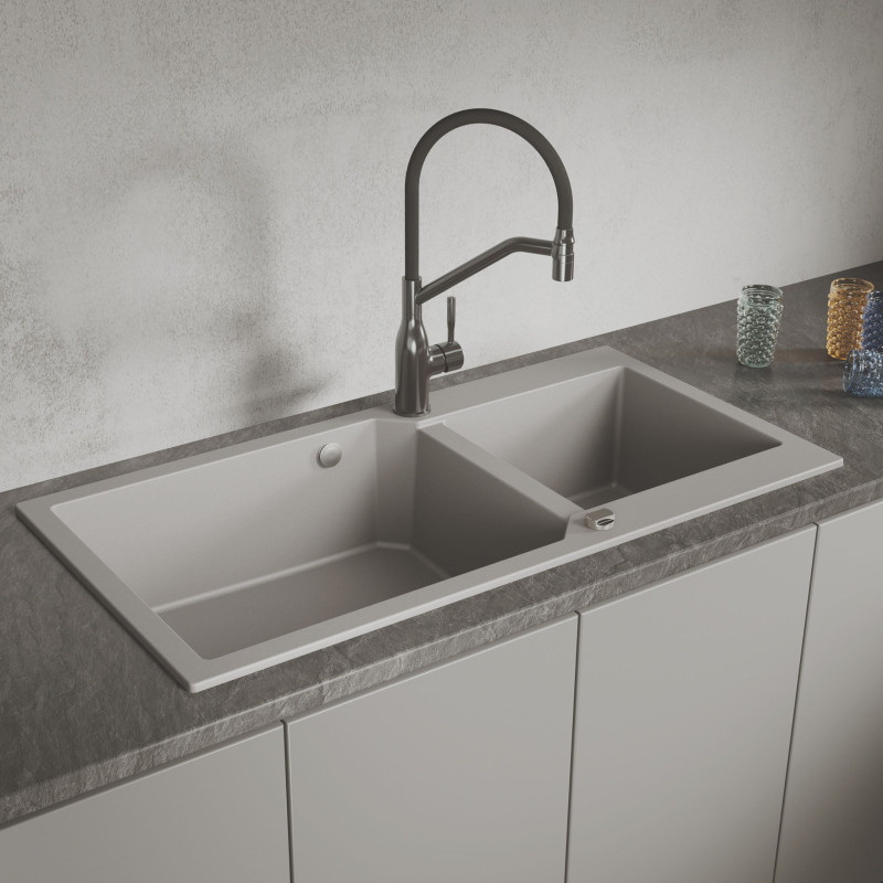 ✅ Otrzymasz zlewozmywak granitowy wpuszczany w blat w szarym wykończeniu.