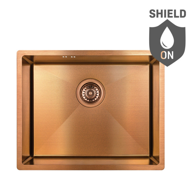 ✅ Otrzymasz Stalowy zlew podwieszany Marmara w wykończeniu miedzi.