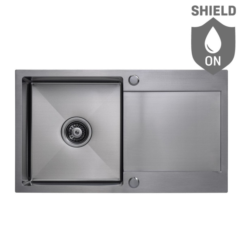 Shield On to powłoka, która sprawia, że woda spływa ze zlewu, nie zostawiając śladów.
