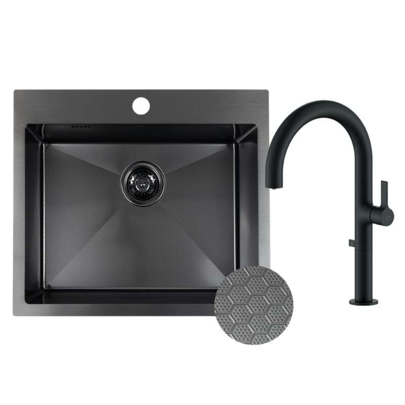 Zlewozmywak Malawi w wykończeniu czarnym to kwintesencja nowoczesnego designu połączona z bezkompromisową trwałością stali. Jego wyróżnikiem jest innowacyjna powierzchnia Honeycomb, której struktura plastra miodu nie tylko przyciąga wzrok, ale stanowi technologiczną tarczę dla powierzchni zlewu. W zestawie znajdziesz również zaawansowaną baterię kuchenną Pureco z funkcją filtracji wody, co czyni ten komplet gotowym centrum dowodzenia w Twojej kuchni. To rozwiązanie dla osób, które nie szukają kompromisów między estetyką a funkcjonalnością – tutaj forma heksagonu wprowadza idealny porządek i styl.